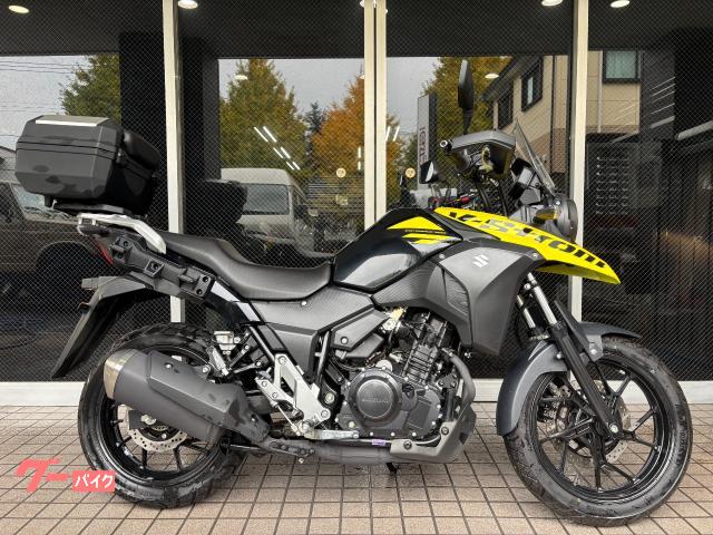大人気の250ccアドベンチャーモデル!Vストローム250です!軽量だけどガッチリした車体で大型のケースを取り付けても安定した走りを実現します♪こちらの車両はスズキ純正のトップケースを装着!オプション設定のサイドケースを追加すれば、フルパニアでのツーリングも可能です♪