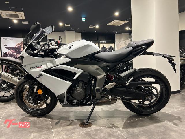 トライアンフ大阪厳選中古車情報!! デイトナ660(2024年モデル)の当店厳選下取車です。カラーリングは「スノードニアホワイト/サファイアブラック」当店厳選の下取ワンオーナー車です☆