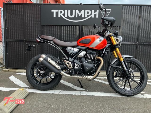 待望のトライアンフ中型セグメント!満を持して登場したトライアンフ初の400ccモデル!!新開発の水冷単気筒エンジンであるTRシリーズは40PSを発生。6速ミッション、ABS、トラクションコントロールも標準採用し走りを予感させるパッケージとなっています。当店は福岡県唯一のトライアンフ正規ディーラーです。当店は福岡県唯一のトライアンフ正規ディーラーです。最新ラインナップの新車はもちろん、中古車、当店試乗車の中古販売も行っています。中古車は全車ディーラー保証3ヶ月!さらに2年間の延長保証をオプションとしてオススメしております。