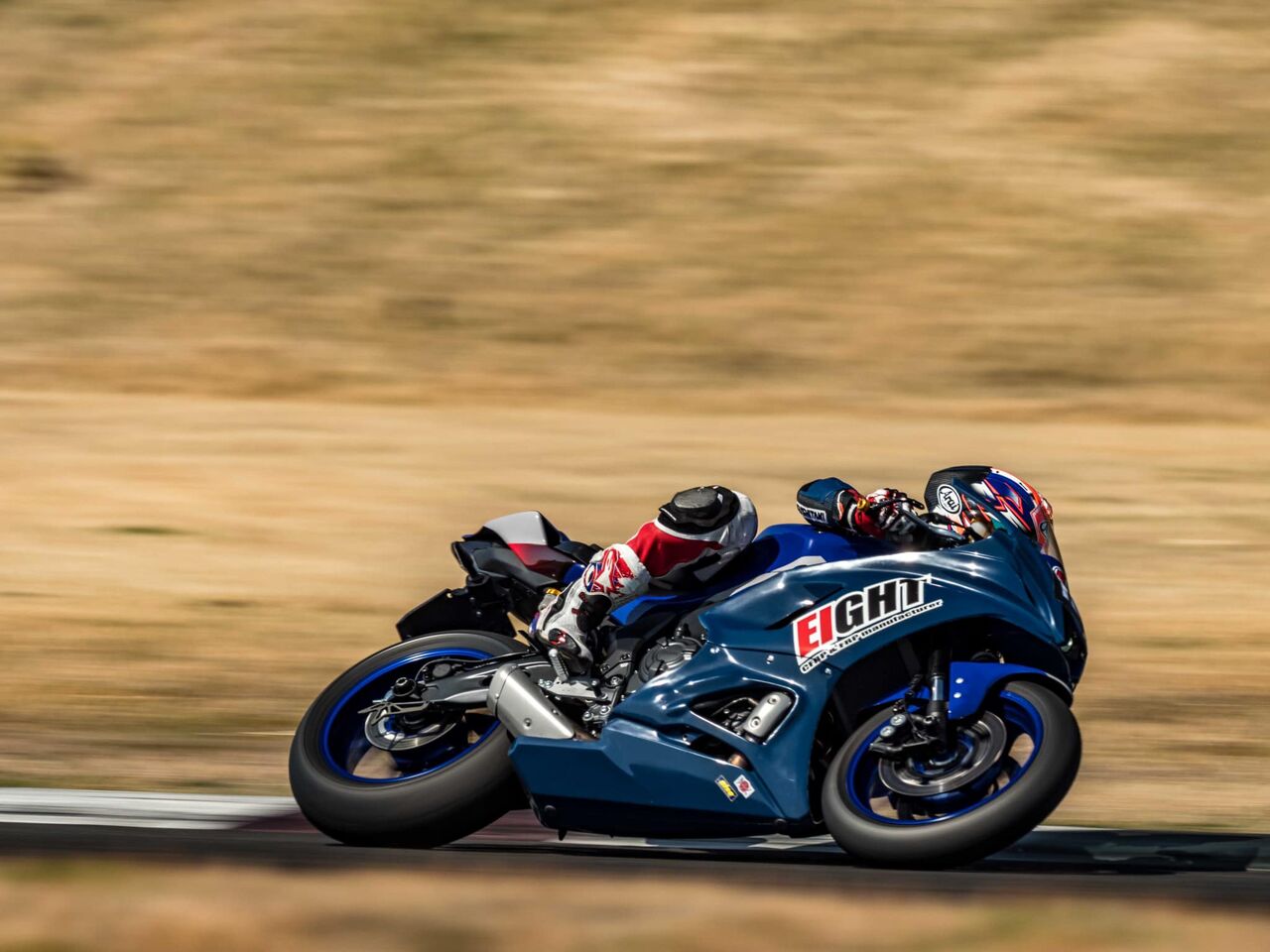 この日は2022年式YZF-R7用フルカウルのバンクテスト