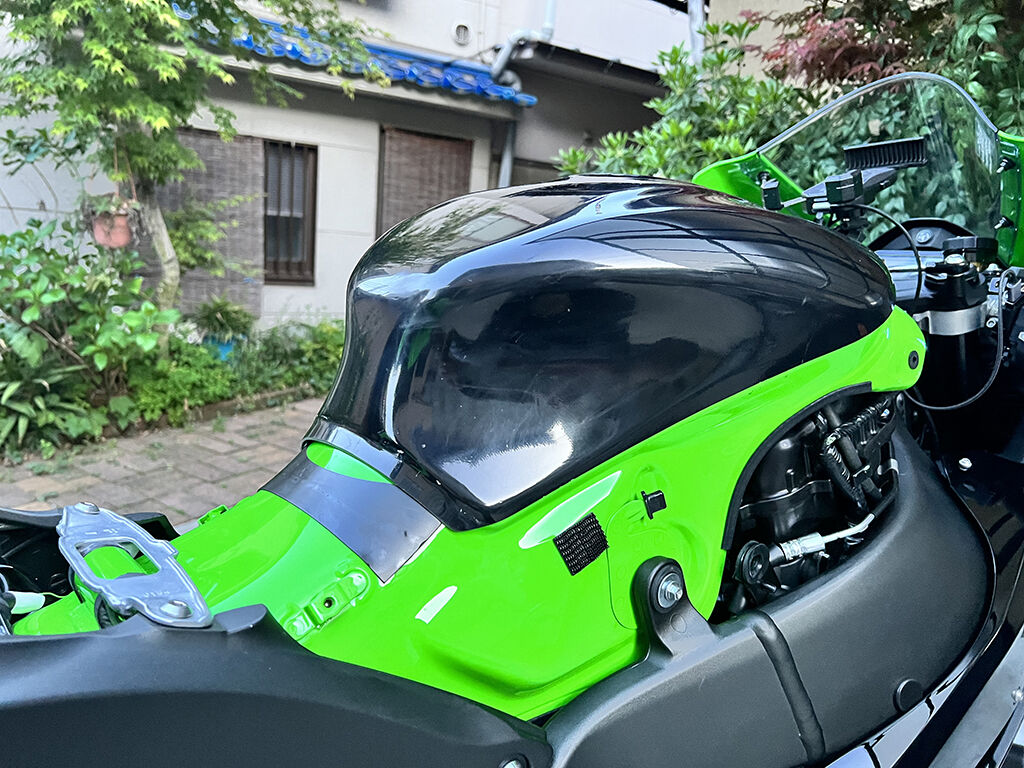 21年型以降のZX-10Rにタンクカバーのフィッティング