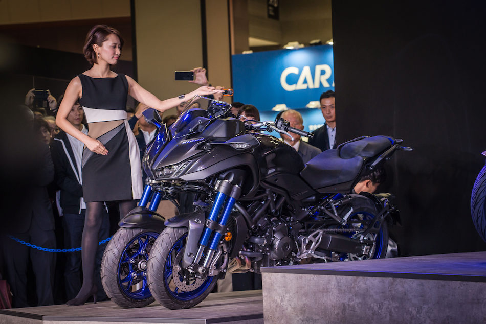 大阪モーターサイクルショーに引き続き、2017年3月24日~26日まで開催中の第44回東京モーターサイクルショー2017に出展するヤマハのブースでは、注目のMTシリーズをはじめMAXシリーズやトリシティなど現行モデルを多数展示。