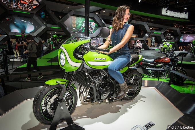 EICMA2017(ミラノショー)のカワサキブース。Z900RSカフェ、ニンジャH2 SXなど世界初お披露目のモデルに湧き上がるブースの模様を、各車の詳細な写真とともにじっくりお届けする。
