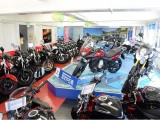 2F:新車・モトマップ海外モデル展示。最新モデルをはじめ豊富な在庫でお待ちしております。