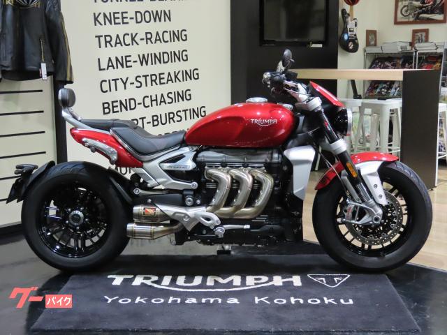 トライアンフが誇る究極のマッスルロードスターロケット3R。2021年モデルのワンオーナー車両が入荷いたしました。メーカー純正アクセサリーを装着しております。
