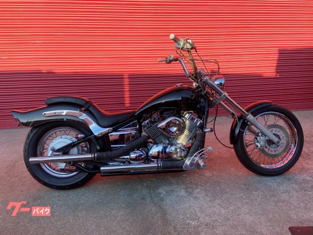 エイプハンドルにトリプルツリーで延長フォークストレッチタンクでブラックアウト!キマッテます この度は広告出展の数ある中からご選びご観覧いただきありがとうございあます。当店でご成約いただいた後中古車の場合納車までの期間と致しまして10日~14日を納車整備~試乗最終チェックまでの期間として頂いております。出来る限りのチェックと整備を施し納車させて頂き納車後何も無いような状態でお出しさせて頂きバイクライフを楽しんで頂くために努力させて頂いておりますのでご了承下さい。新車の場合ですと小型までは即日納車も可能な場合ございます。当店スタッフ全員が趣味-バイクなので一台一台自分のバイクのように手懸けるよう心がけていますので是非お任せ下さい。
