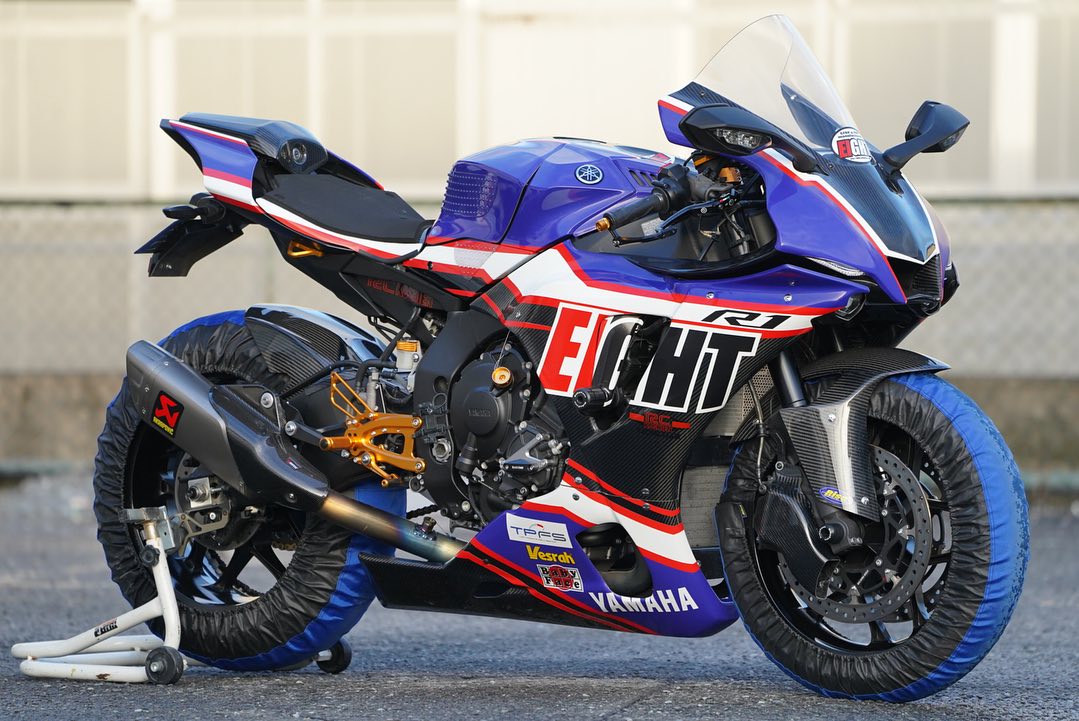 YZF-R1はカーボンカウルにラッピングを施した車両でRC甲子園様から発売されているブレーキダクトも装着しています。