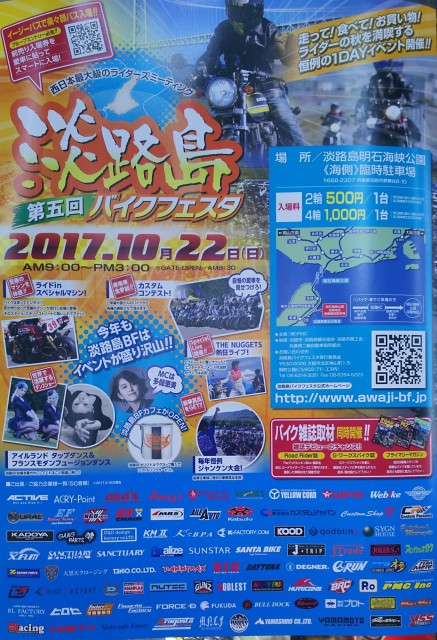 PMC様主催の 第五回 淡路島バイクフェスタ2017 ミスティ初出展いたします\(^^)/ 昨年の出展社数はなんと96社! 関西最大級のイベントですね\(^^)/ 公式サイトは http://www.awaji-bf.jp/ 2017/10/22 国営明石海峡公園 海側臨時駐車場 入場料 二輪 5…