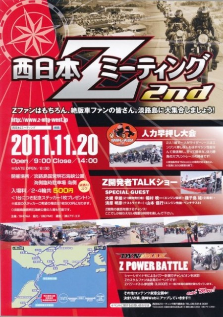 今年も『ピーエムシー』主催の 【西日本Zミーティング】が開催されるそうです。 昨年はどうしても都合がつかなくて参加出来ませんでしたが 今年は、『Zファーザー』の“松永社長”と相談して 是非とも参加させて戴こう! と、いう事に相成りました! (●^o^●) 西日本に知り合いは多くいるのですが イベントとしては…