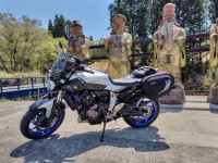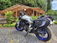縦積み積載の機具です。L型アングルとL金具が2箇所と途中にカーキ色ベルト、黄緑色のロープとSフック8個。 Sフックの片方は輪を絞り込んで抜けないようにして、黄緑ロープを自由にスライド出来るようにしました。これが積載時に威力を発揮します。 L…