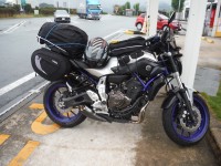 チエーンメンテを簡単にする簡易器具を作ってみました。メンテナンススタンドの代用でジャッキの応用です(^_-)-☆ バイク後輪を簡単にジャッキアップしてタイヤを浮かすことができます。 メイン写真はタイヤが完全に浮きました( ^^) _U~~ タイヤがフリーに…