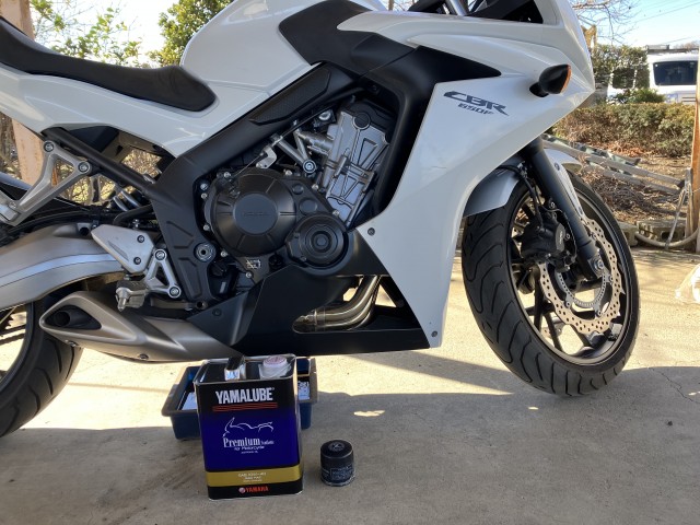 CBR650Fのエンジンオイル交換を行いました。 オイル:ヤマルーブ プレミアムシンセティック 10W-40 フィルター:ホンダ純正オイルフィルター 15410-MFJ-D02 走行距離:9886