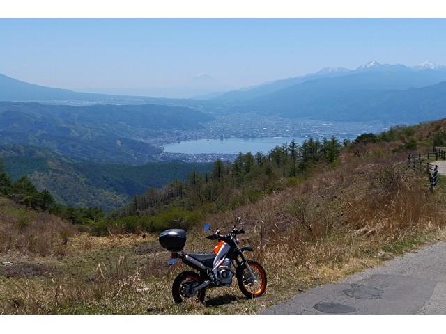 2024年5月10日 高ボッチ高原から諏訪湖の上に薄っすら富士山