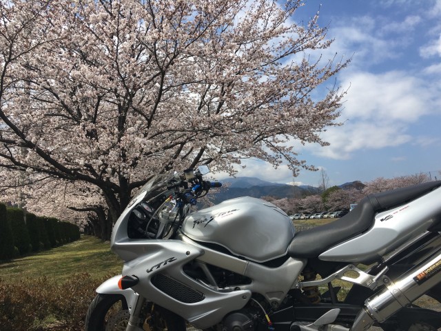 自宅近くの公園にて、桜とVTRのコラボ(^_^)v