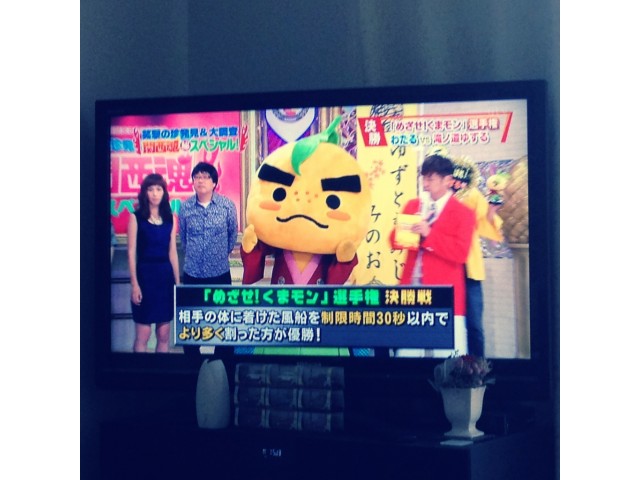 箕面のゆるキャラ、滝ノ道ゆずる君がテレビの生放送にでてる>_< 椅子取りゲームとかでほかのゆるキャラと戦っててかなりアグレッシブや〜笑