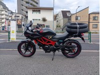 還暦のVTR−F乗りです。大学生時代にカワサキAR50を4年乗りました。社会人になり仕事で本田技研工業向け部品メーカーで車両開発に10年携わり50ccからGOLD WINGまで80〜90年代は毎日仕事で接していても免許の関係で乗る機会はございませんでした。四輪ではサーキット、ジムカーナを30年やってます。10年前に大型自動二輪免許を取得しましたが、その間所有したのはスクーターを3台、スーパーDio、スーパーDio ZX、Dio110を乗り、この度どうしてもタンクをはさめるバイクを所有したくHONDA VTR−Fになりました。レンタルバイクや試乗車ではBigバイクやリッターSSを始め色々乗りましたが、年齢や体力に無理がないクォーターで新車から旧車を含め検討し、今の自分のライフスタイルからVTR−Fにしました。どうぞよろしくお願い致します。
