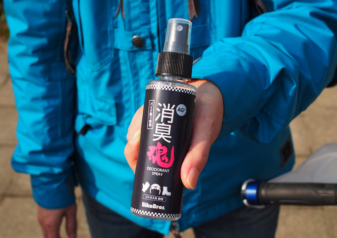 おお、、、何でアタクシより自社製品に詳しいんでしょう(汗) とりあえずこの歳で離婚はしんどいので早速スプレーすると、これが面白いように臭いが消える!超微香性(シトラス)なのですが、塗布してからしばらくするとほとんど香りも残りません。持ち運びやすい100mlサイズというのもライダーにはうれしいね!