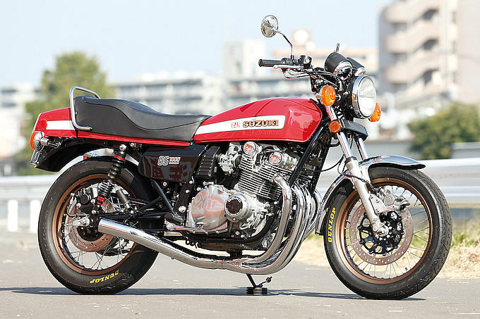 GS系の世界的成功で4スト技術に自信を得たスズキは、国内主流の400cc級に先陣を切って4スト4気筒DOHC 4バルブというハイメカを投入、先進性を強くアピールした。
