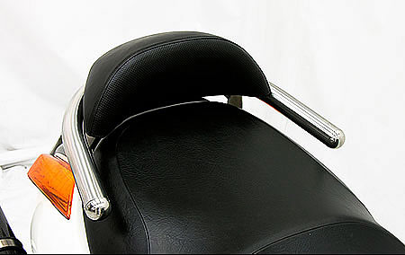 ジェンマ用バックレスト付き38φタンデムバーブライアントタイプです。ローダウンはスクーターカスタムの定番となっていますが、そのローフォルムに合わせて出来るだけ車体全体を低く見せるために、車体との一体感を追求したタンデムバーが開発されました。