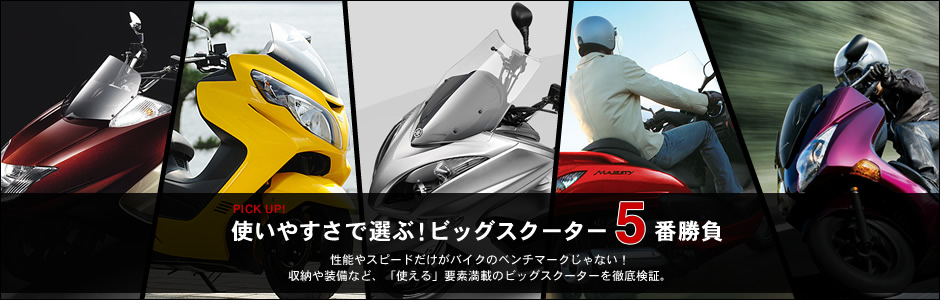 性能やスピードだけがバイクのベンチマークじゃない!収納や装備など、 「使える」要素満載のビッグスクーターを徹底検証。