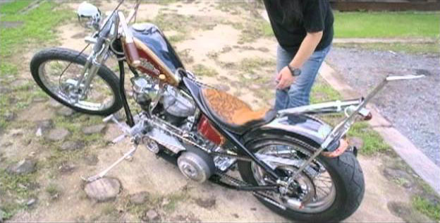 1952年式FLをベースとしたロナーセイジのトラッドラインとも言うべきスタンダードなチョッパー。しかしこの車両にはロナーセイジならではの緻密な計算が、そこかしこ?に隠されている。