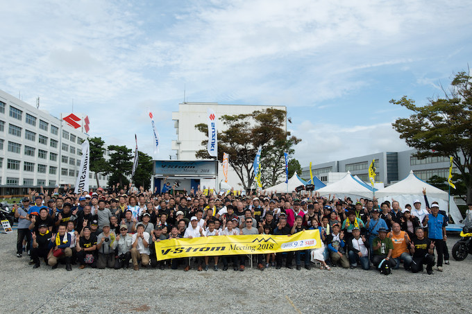 2018年9月2日(日)、前日までの雨予報をものともせず、Vストローム(V-Storom)のオーナーやVストロームに興味をもっている人、総勢884名が静岡県浜松市にあるスズキ本社特別会場に集まり「Vストロームミーティング」が開催された。