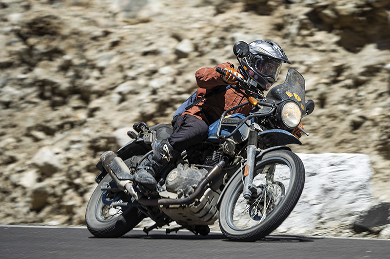 ロイヤルエンフィールドが初めて全面新設計した空冷単気筒アドベンチャーツアラー、ヒマラヤ。冒険ラリーで培ったノウハウで既存のモデルとは異なる特性を構築し、穏やかで優しい乗り味と必定にして十分以上の悪路走破性を実現している。