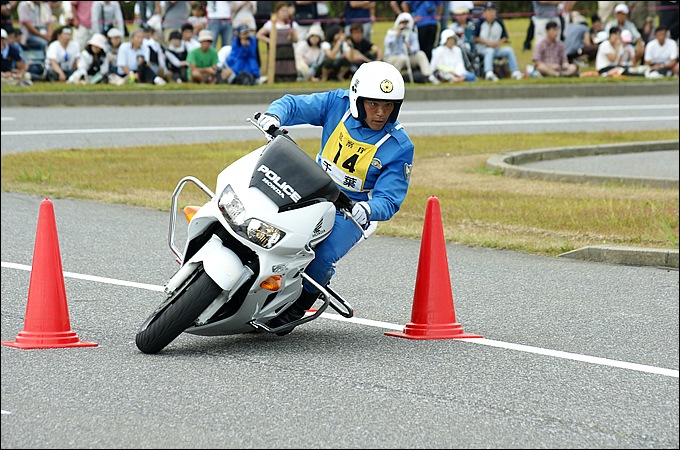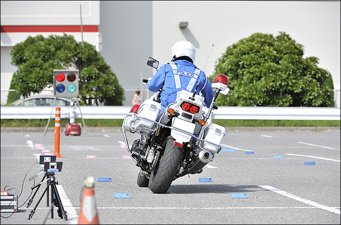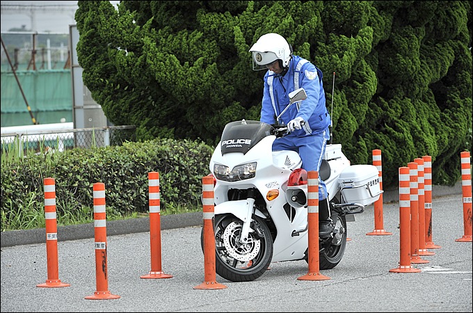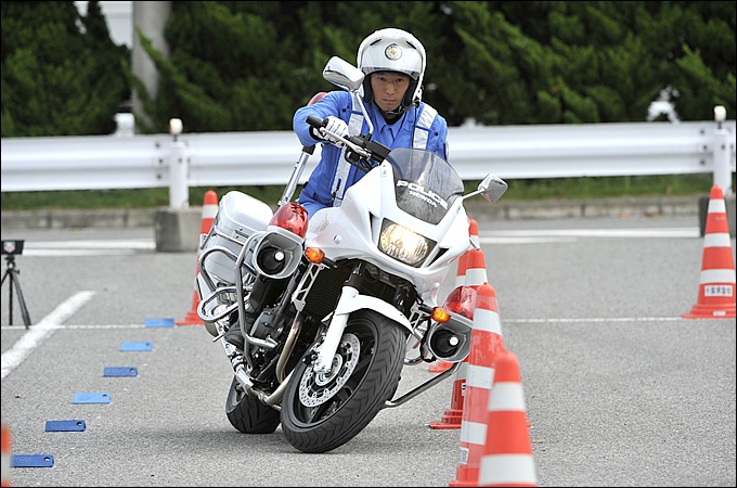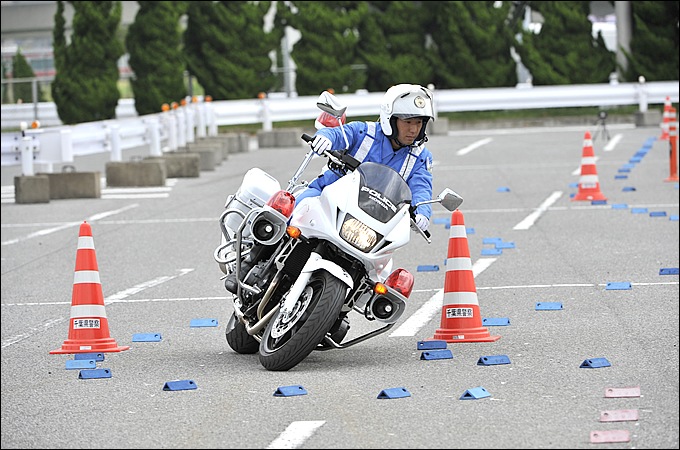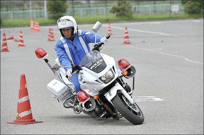 白バイ隊員が行う「8の字」はかなりハイスピードである。強烈な減速を必要とするため前後ブレーキをフルに使っていくがその加減がポイントとなる。滑りやすい路面にも役立つスロットルと前後ブレーキの連携操作のコツを身につけるには最適なトレーニングでもあるのだ。