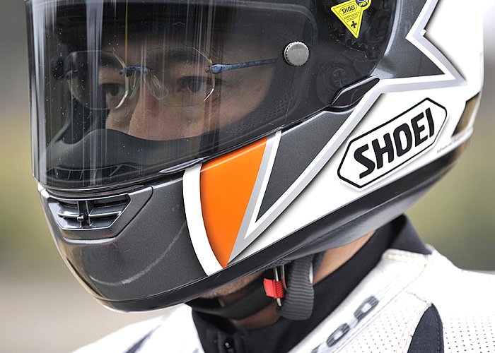 | やはりフルフェイスが安心 サーキット走行においては安全性とフィット感の点でフルフェイス型がおすすめ。適正サイズを選ぶことはもちろんですが、風圧で揺すられないよう、内装を少しきつめに調整するのがコツです。シールドは暗すぎないものを。万が一のときに脱着をしやすくするヘルメットリムーバーの装着が一般化してきています。 | 手首が隠れるタイプを グローブはまずフィット感が大事。レバーを握ったときに違和感やツッパリ感なく操作し易いことがポイントです。また、スーツの袖の上から完全に手首が隠れるタイプを選びましょう。指や甲部分にハードプロテクターを装備するタイプの場合、握ったときに位置がずれないか、当たって痛くないかも要チェック。 | ペダル操作し易いものを 足は転倒時にケガをし易い部分。ブーツは脛やくるぶし、踵などがしっかりプロテクターで守られていることが条件です。操作性も大事で、ガッチリ作られていても足首を上下方向に自由に動かせることがポイント。サーキット走行ではバンク角が深くなるため、爪先にスライダーを装備したタイプがおすすめです。 |
