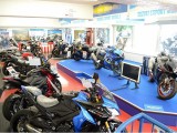 2F:新車・モトマップ海外モデル展示。最新モデルをはじめ豊富な在庫でお待ちしております。