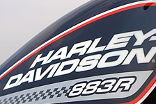 タンクロゴはXR750をモチーフにしたワークスカラーを採用。以前の883Rではレーシングオレンジのカラーのみでしたが、現在は3種類のカラーパターンから好みのモノを選択することができます。