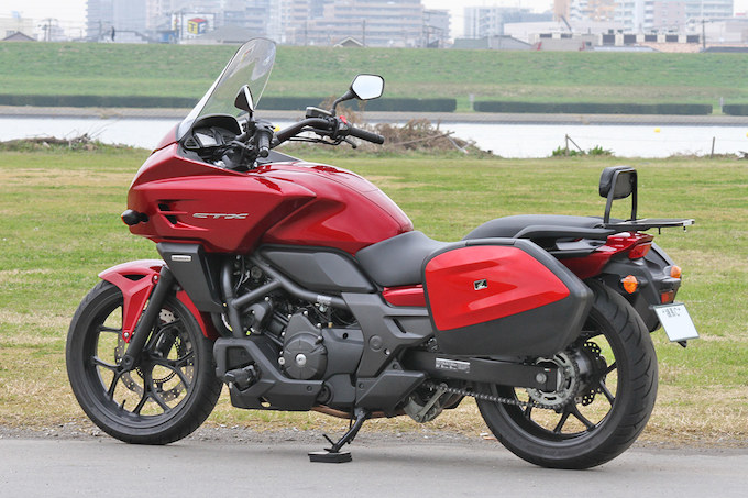 もう一点好印象を抱いたのがシートだ。その素材まで伺い知ることはできなかったが、柔らかすぎず硬すぎず、というちょうどいい塩梅の仕様で、臀部そのものは大きな座面で受け止めつつも、両足が真下にすとんと降りる絶妙な設計になっている。大柄な海外クルーザーだと、シートの座面すべてが広すぎて足が外に開いてしまい、結果的に足着き性を損なうケースがあるのだが、この心配りはさすが和製メーカーと唸らされるポイントだ。それだけに、フォワードコントロールとされるステップ位置がやや残念なところ。とはいえ、この CTX700 でのクルージングが快適極まりないことに疑いの余地はない。専用アクセサリーが備わった異例のインプレッションではあったが、CTX700 の特性を感じれば感じるほど、ウインドスクリーンやサドルケースがないことの方に違和感を覚えてしまうところが実に不思議。飛ばさずにハイウェイを気持ちよく流しつつ、気長にツーリングを楽しめるモデルだということを体感させてくれた。