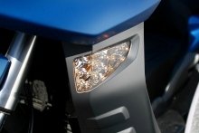 C 600 Sport をひと目みて最初に感じたのは、想像していたよりもコンパクトに纏まっているということだ。新開発の 650cc ツインエンジンを搭載しているというので大柄なものをイメージしていたのだが、エッジの効いたボディラインと、ビビッドなツヤ消しブルーがもたらす視覚効果で、シャープかつスマートな印象だ。