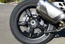 そんな強力なエンジンを支える骨格は高い剛性を誇りつつ適度なしなり感を持たせたスチールパイプフレームを採用。フロントサスペンションからリアスイングアームへの一連の構成は見た目こそ一般的なものだが、モーターサイクルのようなライディングプレジャーを得るため計算しつくされたものだ。もちろん ABS も標準装備、スポーツシティクルーザーとして、ほぼ完璧なパッケージングとなっている。