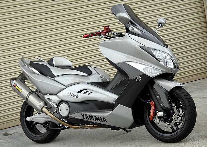 TMAXのエアロパーツといえば大阪の弥生。250ccクラスのようなエアロというほどデザインを変えるものではなく、純正形状をカーボンに変えるアイテムが弥生には豊富に存在し、それらは日本はおろか、海外のTMAXユーザーからも注目を集めているほどの人気ぶり。