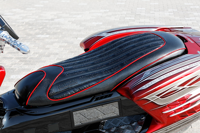 2000年代初頭から始まるビッグスクーターブームが落ち着きを見せた2007年に、GOTTYは大阪で生まれた。当時はクルマの世界でもラグジュアリーが最盛期であり、そのスタイルをビッグスクーターのジャンルで継承し、今でも第一線でその普及に全精力をかけているのは、日本全国を探してもGOTTYしかいない。今回紹介するこの煌びやかなマグザムは、同店が創業当初に製作した代表車両である。