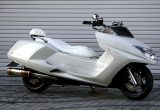 現在でもビッグスクーター業界で活躍しているショップは、専門のカスタムショップだけではない。ブーム当時からこの業界の活性化に協力してくれていたペイントショップも、ビッグスクーターカルチャーの根底を支えてくれている重要な存在だ。今回紹介するのは、大阪池田市にて今でも精力的に活動しているペイントショップ、S-SHOP Design(エスショップデザイン)が手掛けたマグザムだ。この車輌は、2008年にトランスクーター誌(休刊)が主催したカスタムコンテストでベストオブアートワーク賞を獲得。今ではなかなかお目にかかれない、この唯我独尊のアートワークをじっくりとご覧いただきたい。
