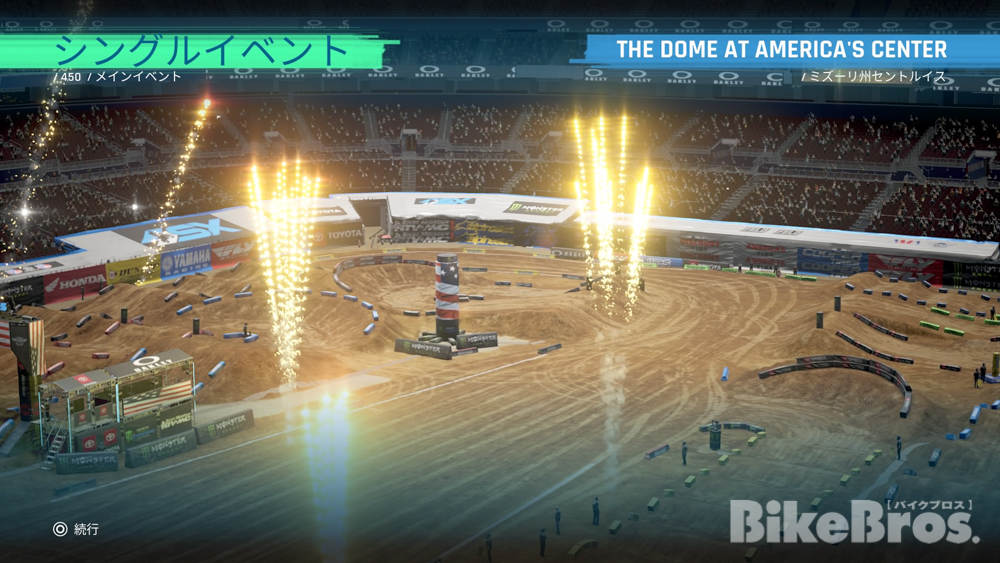 AMAスーパークロスは屋内スタジアムを使ったモトクロス競技。ジャンプが連続したり、鋭角なコーナーで構成されるテクニカルなコースが特徴。ショー的な派手な演出が人気で、トップライダーは日本のプロ野球選手のように子供たちのヒーローだ。