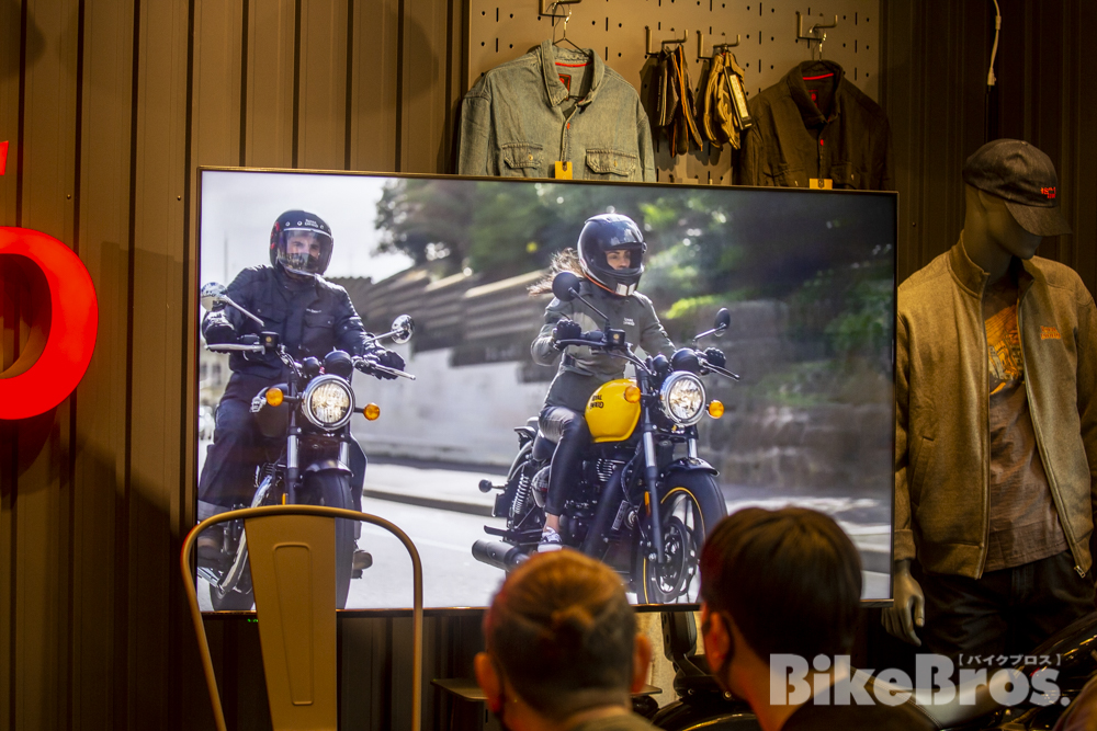 会場に設置された大型モニターでは常にロイヤルエンフィールドのプロモーションビデオが流されていて、イベント内ではメテオ350のビデオも披露された。