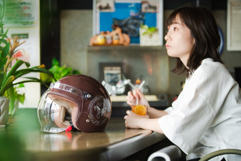 Kleinの特徴は視界の広さにもある。フルフェイスヘルメットは全体が覆われている分窮屈さを感じやすいが、Kleinはフェイスウィンドウの左右の視野範囲を広く設計しているため、周囲が見やすく、開放感を感じながら走ることができた。特にツーリングでは街並みや自然の景観を求めて目的地を決めるライダーも多いだろう。見える範囲が多い分、景色から感じるものも多く、より充実した時間になることは間違いない。安全性と見た目の可愛さ、どちらも兼ね備えているKleinは、ヘルメット選びに悩んでいる女性ライダーにぜひおすすめしたい。