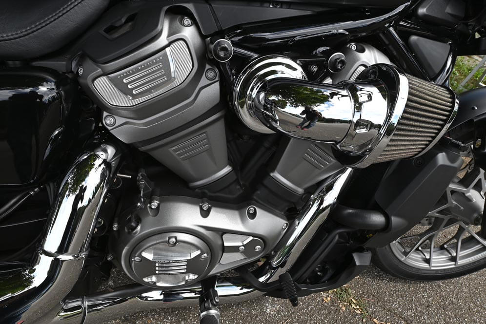 今回ハーレーダビッドソンジャパンから借り受けた車両には純正P&Aパーツが装着されており、エンジンにはスクリーミンイーグルのヘビーブリーザーエアクリーナーやビレットタイプのアクセサリーカバー類が装着されている。さらにボタンひとつで3段階に音量調整ができるジキル&ハイドマフラーが取り付けられており、ハーレーならではの迫力あるサウンドを堪能することができる。JMCA認定の合法マフラーで全国のH-D正規販売店でも取り扱われており、もちろん車検にも対応している。