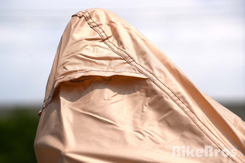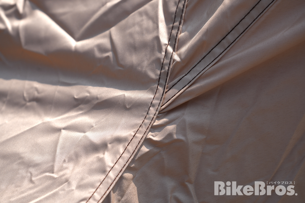 生地の表面にははっ水性のコーティングが施されている上に、バイクカバーの裏地にポリウレタンシートが貼られています。防水効果はかなり高そうです。