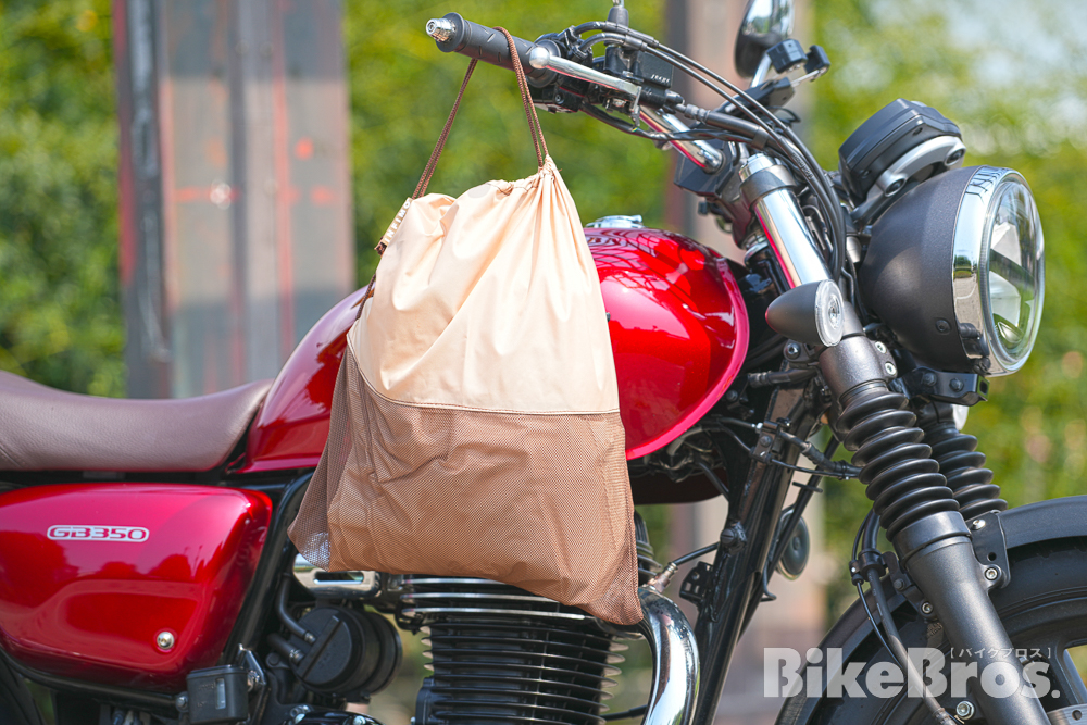 バイクカバーと同色の専用ケースも付属。雨水や夜露が排出されるように下半分はメッシュ素材となっているのもポイント!