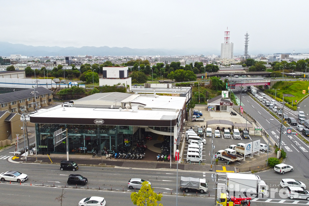 京都南インターチェンジからすぐ、国道一号線沿いに堂々と構えるバイクショップ『サッシュ』。ここは国内外のさまざまなメーカー車両を扱うだけでなく、トライクやサイドカーといったスリーホイーラーにも強いショップとして広く知られています。