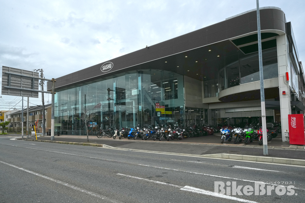 ひとつのバイクショップとしては、国内でも有数の規模を誇る『サッシュ』。店内には数え切れないほどの中古車両が並べられるほか、広々とした敷地を利用したイベントも開催されます。