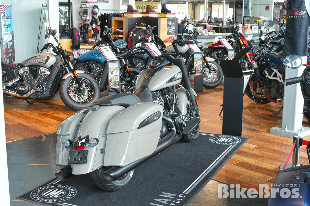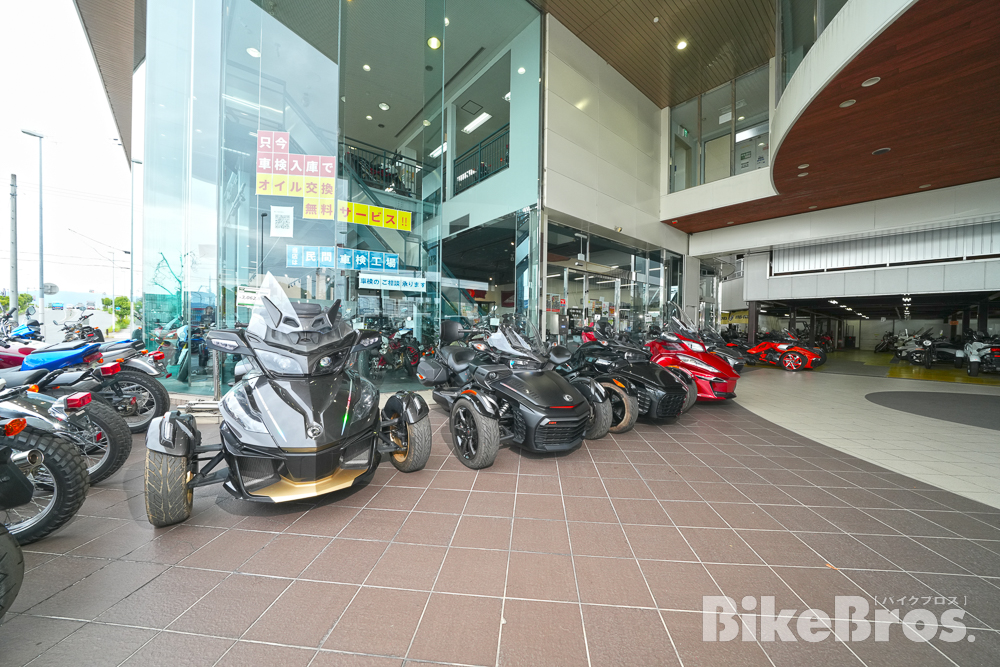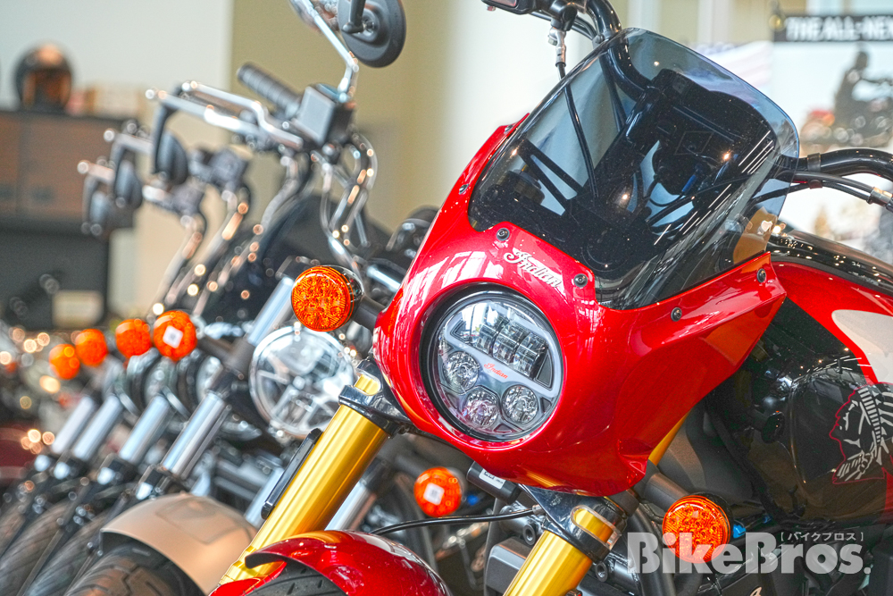 近年はバイクシーンを取り巻くブームやムーブメントが多様化するなか、国内外メーカーの車両を幅広く扱うだけでなく、他店ではまず見かけないようなモデルまで積極的に取りそろえてきました。スリーホイーラーのカンナムも国内では早い段階で輸入販売を始めましたし、2023年に正規ディーラーとなったインディアンモーターサイクルも同様です。