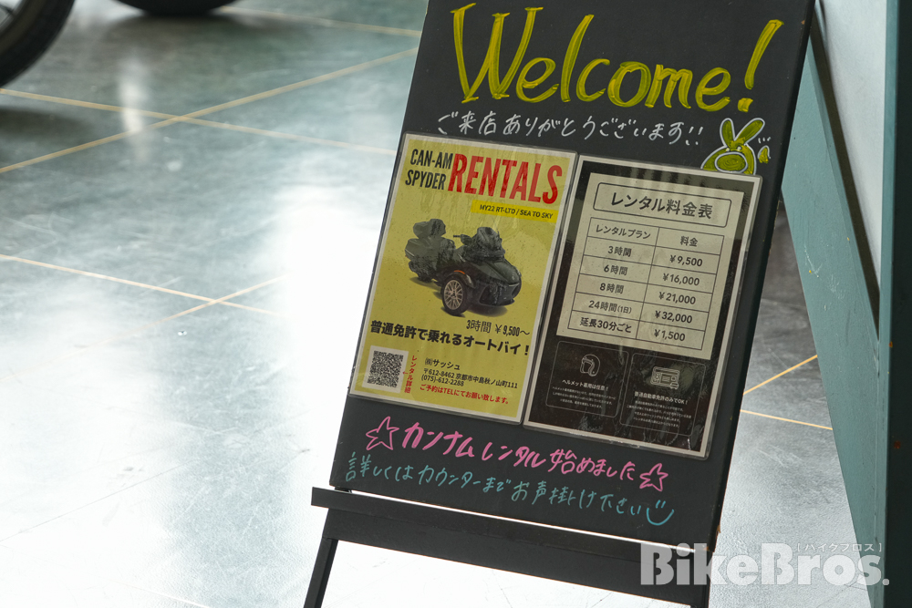 スリーホイーラーであるカンナムは、一般的なモーターサイクルとは一線を画す乗り味。ただ、欲しいけれど一歩を踏み出せない! そんな方に朗報です。サッシュではレンタルを行っています。じっくり楽しんでください!