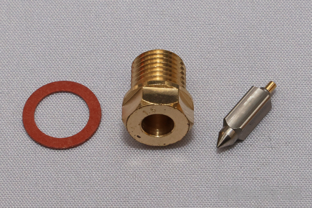 おもにスロットル開度が1/2~全開付近(中速~高速域)における燃料供給量を決めるパーツ。#80などの数字が表記され、数字が大きいほど燃料が濃くなり、小さいと薄くなる。キースター「燃調キット」には6種類が用意されている。