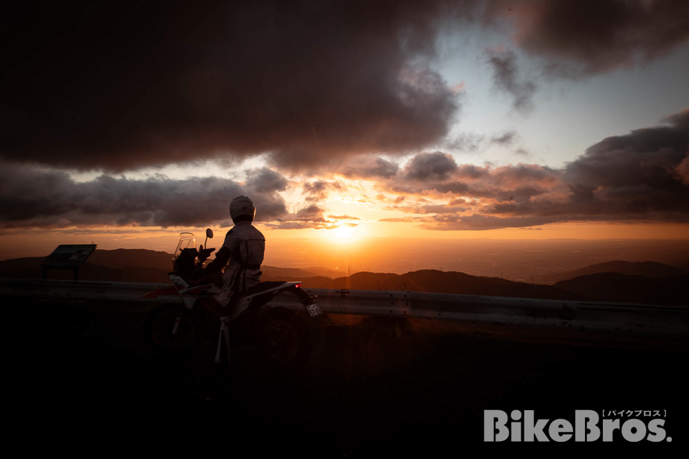 実はこの伊吹山ドライブウェイ、夏の平日は午前3時から営業、さらに毎年7月・8月の週末とお盆の期間は夏季週末夜間特別営業 (オールナイト営業)を行っており、同じ道で夜景と朝焼けを続けて楽しめます。道中には米原の灯が面になって広がります。夜の琵琶湖は輪郭が細く、岸の線が途切れながらつながって見えます。山頂駐車場前の待避所からは東の岐阜・飛騨方面の山々から壮大なご来光を写真に収めることが出来ます。山頂の駐車場に着くころには東の端がわずかに明るく、すすきの穂が最初の光を拾い始めます。