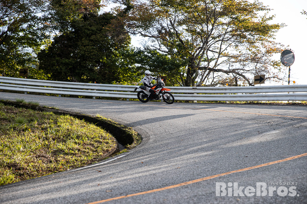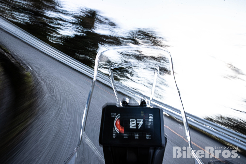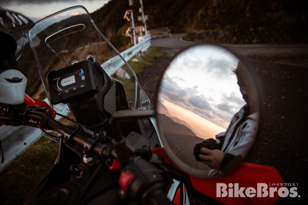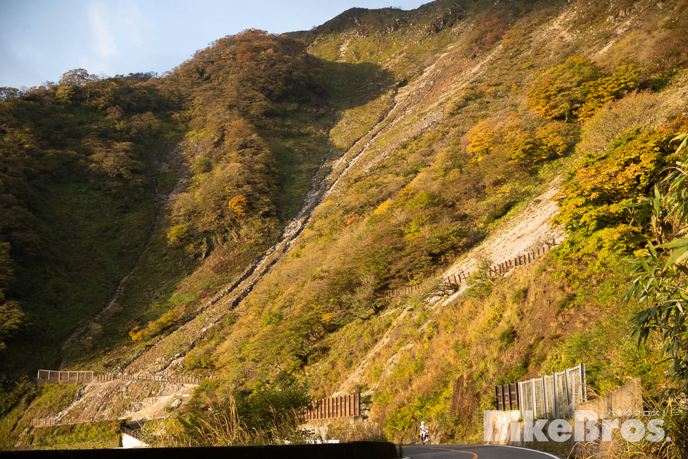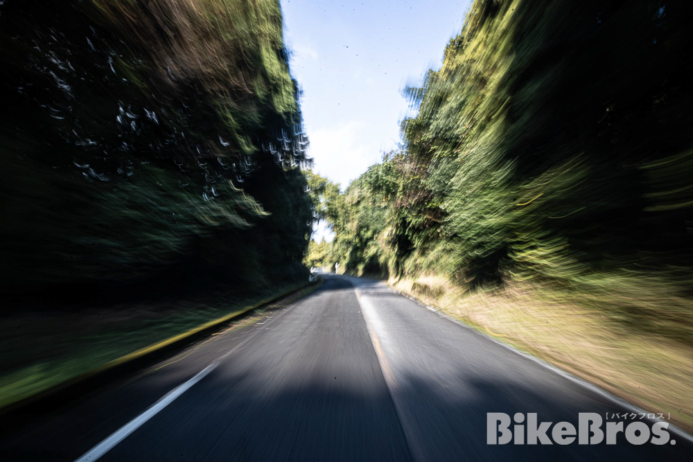 上りと下りで景色が違うのも伊吹山ドライブウェイのおもしろいところ。高所帯の風は短く、すすきの穂はさっきより強く揺れ、紅葉は角度が変わって別の色に見えました。耳の中に届く風切り音が一段低くなり、樹林帯に入ると、影が路面に長く伸びます。落ち葉が白線の上で薄く重なり、排気の低い響きが谷へ落ちて、少し遅れて戻ってきました。